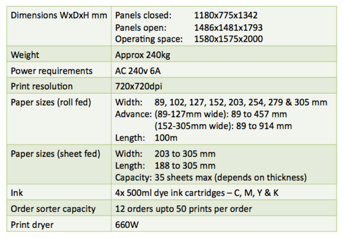 The DL450 is an extremely versatile printer. With the capability to have 4 rolls of paper loaded simultaneously, to dual-track two of those rolls to double the throughput and the ability to print duplex on cut-sheets, this looks like a small photo lab’s ideal tool.